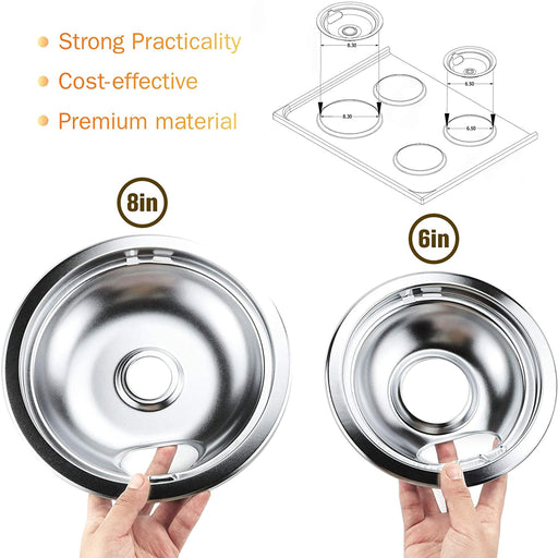 Specifications Product Name: Drip Pans/Bowls Color: Silver Material: Chrome Part Number: W10196405 and W10196406 Package Includes: 2 * 8" Drip...